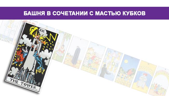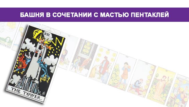 Карта Таро Башня в сочетании с некоторыми младшими арканами