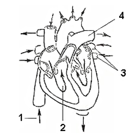 Сердце представляет собой полый четырех камерный мышечный орган, имеющий форму конуса, расположенный в грудной полости, в средостении. Он делится на правую и левую половины сплошной перегородкой. Каждая из половин состоит из двух отделов: предсердия и желудочка, соединяющихся между собой отверстием, которое закрывается створчатым клапаном. В левой половине клапан состоит из двух створок, в правой — из трех. Клапаны открываются в сторону желудочков. Этому способствуют сухожильные нити, которые одним концом прикрепляются к створкам клапанов, а другим — к сосочковым мышцам, расположенным на стенках желудочков. Во время сокращения желудочков сухожильные нити не дают выворачиваться клапанам в сторону предсердия. В правое предсердие кровь поступает из верхней я нижней полых вен и венечных вен самого сердца, в левое предсердие впадают четыре легочные вены.