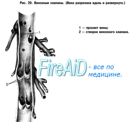Имеет значение и сокращение мышечной оболочки вен, которая в венах нижней половины тела, где условия для венозного оттока сложнее, развитасильнее, чем в венах верхней части тела. Обратному току венозной крови препятствуют особые приспособления вен — клапаны
