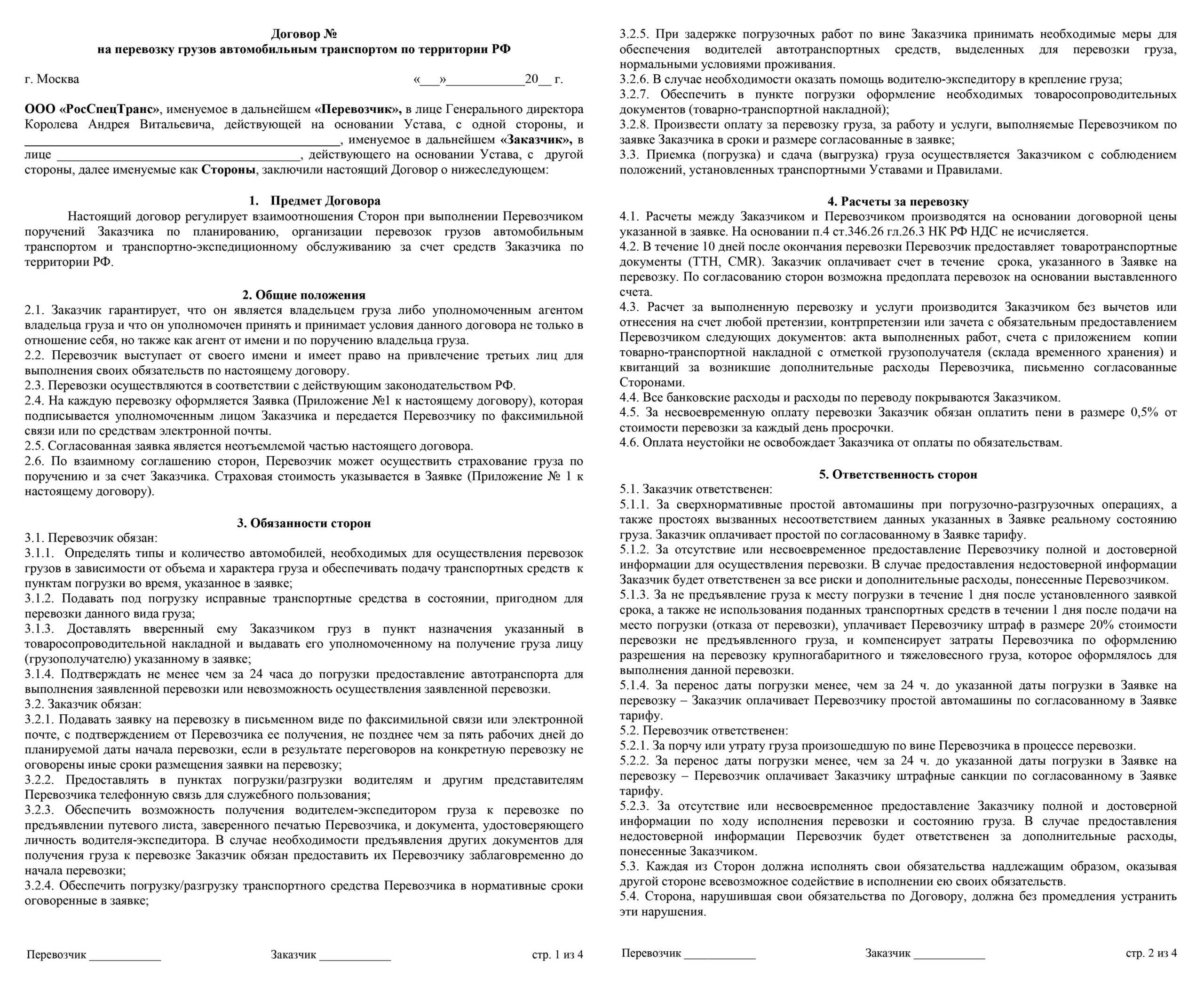 Договор перевозки груза автомобильным транспортом (нажмите на картинку для увеличения размера)