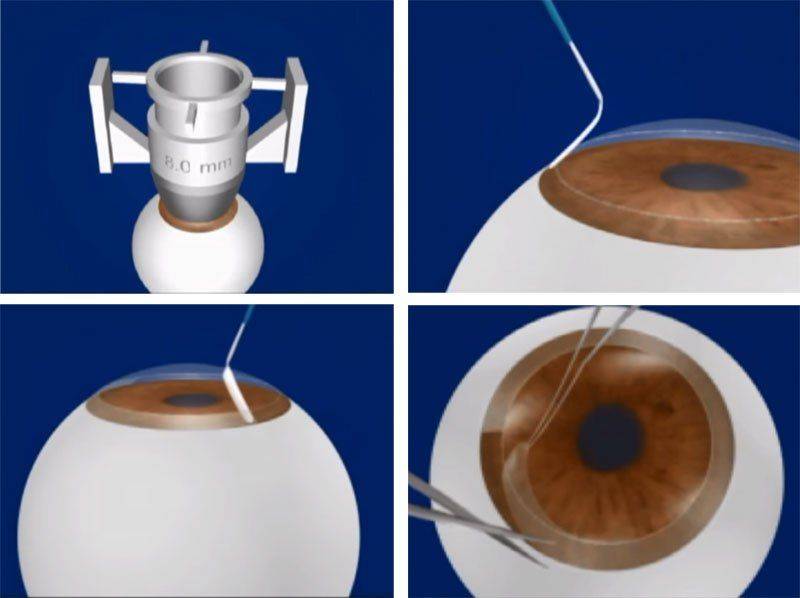 Это методика передней кератопластики. Чаще всего используется автоматизированный способ пересадки роговицы с помощью ламеллярного разреза.