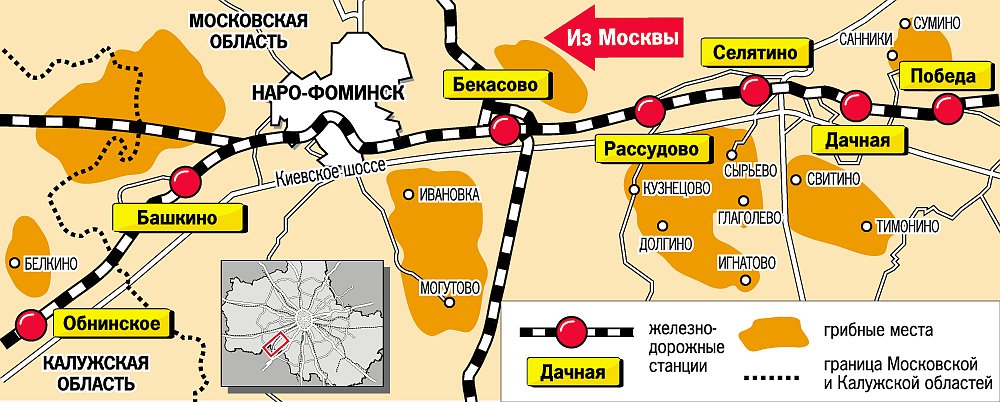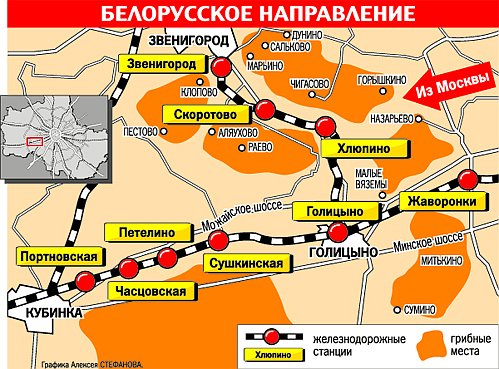 - Грибными местами славится юго-восточное направление от станции «Бекасово».
