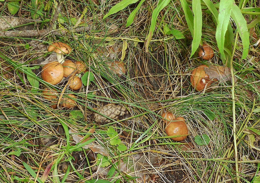 Имеется ввиду «природный вариант газона». В такой хорошо развитой траве грибы тоже растут, но не особо её любят. Возможно — из-за плотного дёрна, через который выбрасывать плодовые тела — одна сплошная морока. А может трава как-нибудь конкурирует с грибами, «отбирая» у них влагу, питательные вещества или место? Но это не столь важно. Главное, что всегда при сборе грибов замечаешь, что в плотной траве они попадаются редко, за исключением разве что зонтиков и шампиньонов. А вот ежели травка реденькая — грибы в ней попадаются часто.