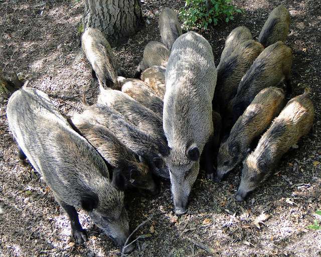 Фото. 7. Кабаны — серьёзные конкуренты грибника. Очень любят устраивать набеги на грибные места. Пожиратели грибов в действии.