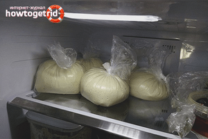 Для более длительного хранения (на 2-3 месяца), дрожжевое тесто можно поместить в морозилку. Тщательно вымесив, помещаем тесто в полиэтиленовый пакет