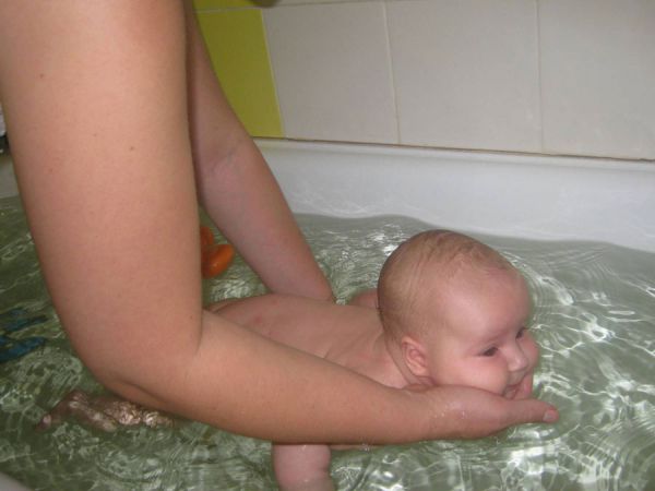 плаванию (а именно знакомство с водой) следует начинать во взрослой ванне,