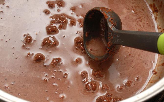. Его надо смешать с какао-порошком.Затем в смесь добавляют горячее молоко и держат на небольшом огне, постоянно помешивая.