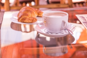 – бисквит, пирожное, печенье.Иногда процедура обставляется более изысканно: посетителю предлагают кувшинчик с горячим какао, сваренным на воде, и кувшинчик с молоком. Также ставят на стол нагретую чайную чашку и блюдце с кусковым сахаром.
