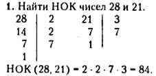 Простые множители числа 28 (2, 2, 7) дополнили множителем 3 (числа 21), полученное произведение (84) будет наименьшим числом, которое делится на 21 и 28 .