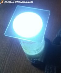 Стекло установлено на пластиковую трубку, а снизу я освещаю его белыми светодиодами фонарика: