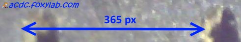 Для определения линейных размеров предметов в увеличенном виде я определил, что расстояние между штрихами штангенциркуля (1 мм) на снимке составляет 365 пикселей: