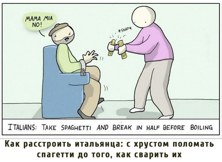 Случается, что ваш мужчина не признает вилку, как инструмент для еды. Бывает и такое. Вот попробуйте ему дать целые спагетти. Посмотрим, что будет, когда он наиграется ложкой. Никакие уверения, что так едят в Италии, не спасут вас от праведного гнева второй половинки.