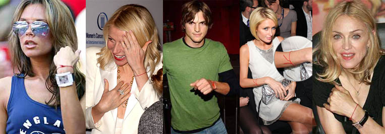 Яркой представительницей каббалы является Мадонна — эстрадная исполнительница, у которой впервые большинство людей и заметило на запястье красную нитку. Носить красный оберег на запястье рекомендуется эзотерическим течением. Оно же утверждает, что носить нитку следует именно на левом запястье.