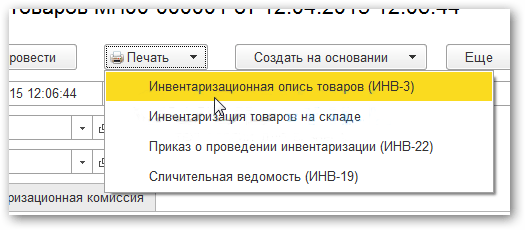 и выбираем Инвентаризационная опись товаров (ИНВ-3):