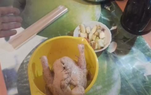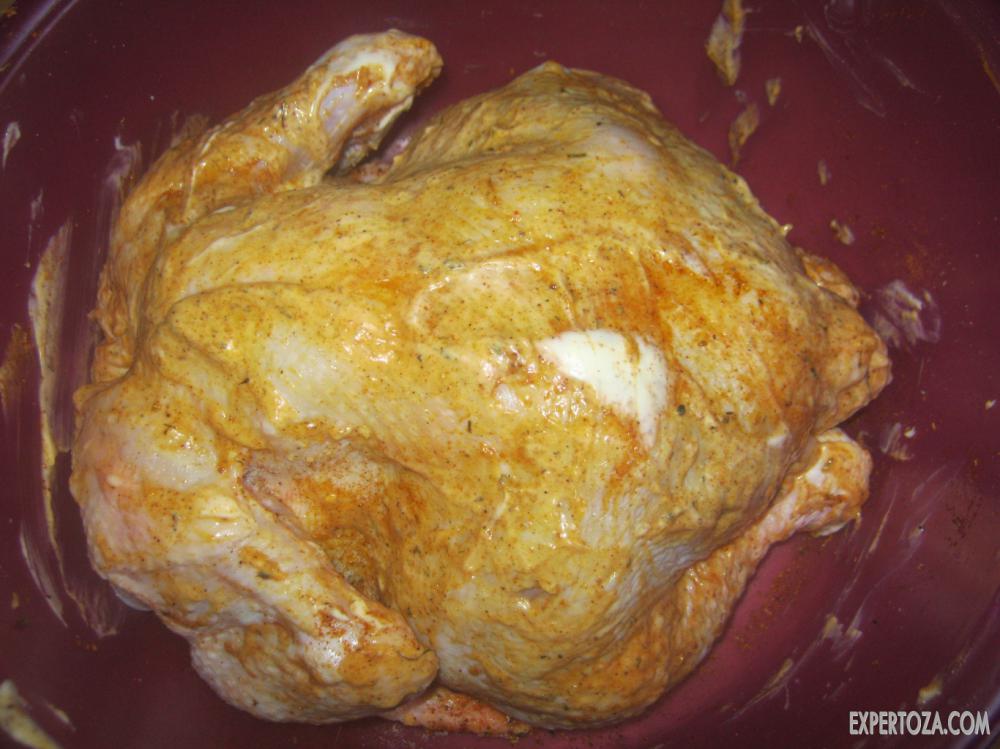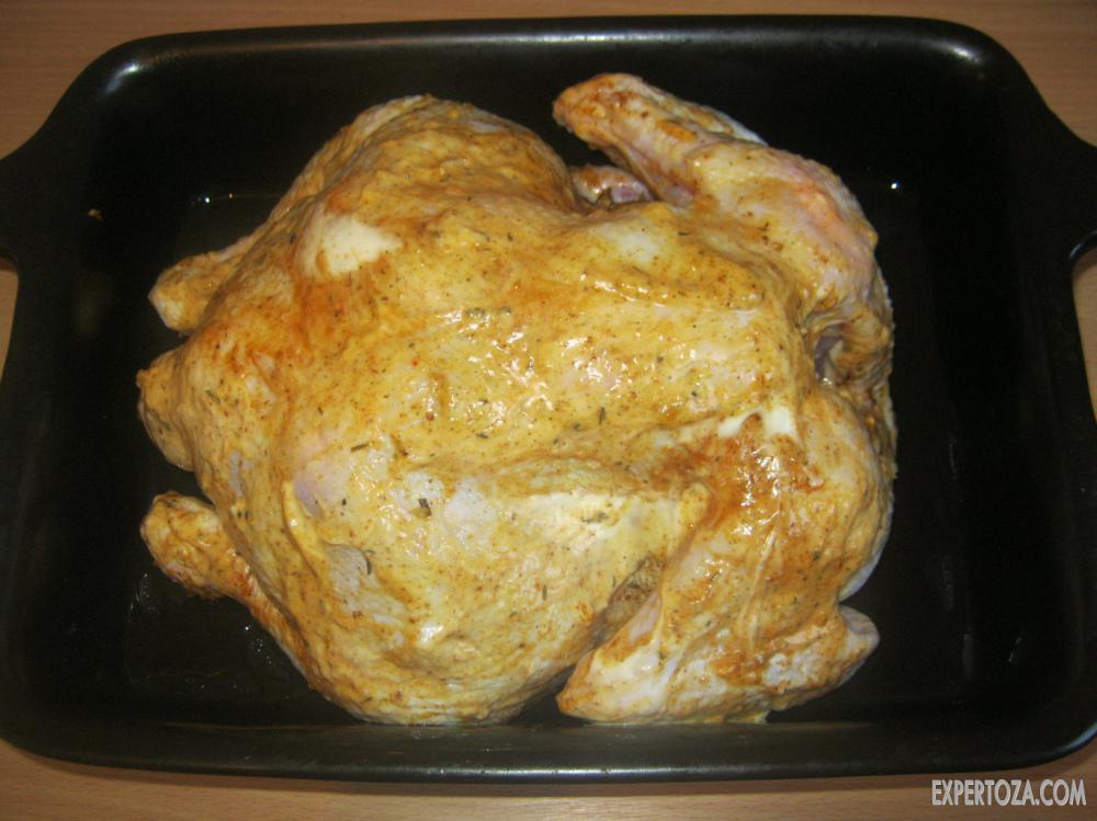 8. Вот теперь наша курочка практически готова к запеканию. Можно оставить ее в таком виде на некоторое время, чтобы она немного промариновалась.