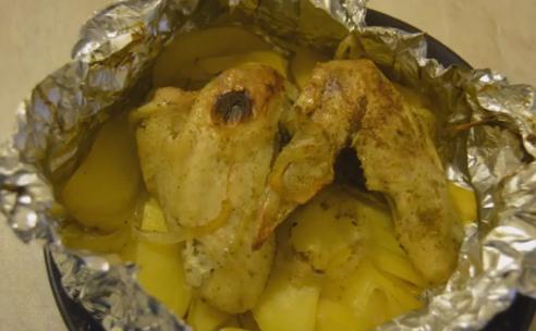 Курица с картошкой в фольге запеченная в духовке