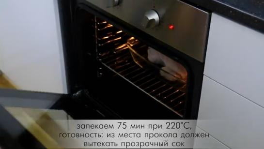 Затем курочка отправляется на час в разогретую до 200 градусов духовку.