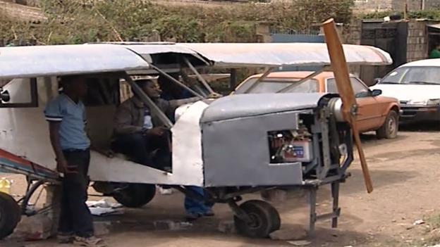 Для воплощения мечты в ход идет все, что под рукой: дизельный двигатель старенькой иномарки, шкив и ремень безопасности от стиральной машины. Чтобы увеличить обороты двигателя великолепно подойдут детали отделки железной кровати времен 50-х годов.
