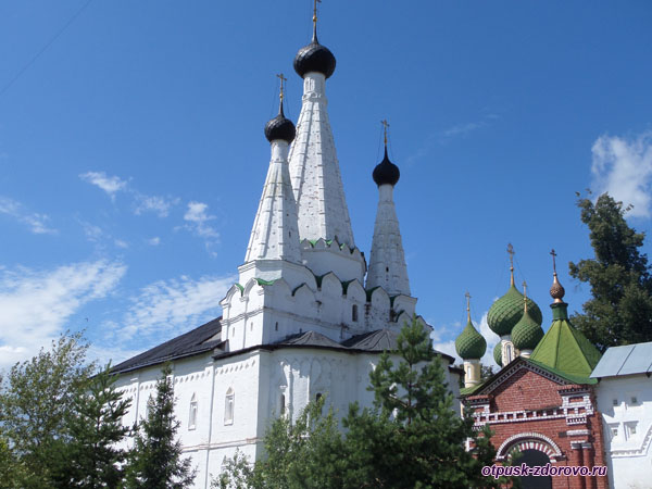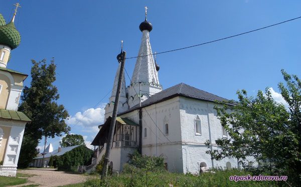 Алексеевская церковь построена в начале 16 века. После Смутного времени в стране её тоже нужно было восстанавливать. Именно тогда к ней пристроили Богоявленский придел, а позже трапезную. В 30-е годы 20 столетия в ней находилась картинная галерея.
