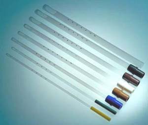 7. Введите канюлю в матку и измерьте с ее помощью длину полости матки, сосчитав точки расположенные на канюле, после ее введения до дна матки (точка, ближайшая к кончику канюли, располагается в 6 см от нее, а другие расставлены через 1 см).