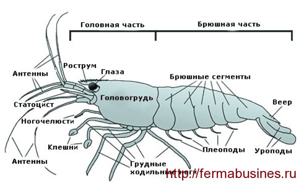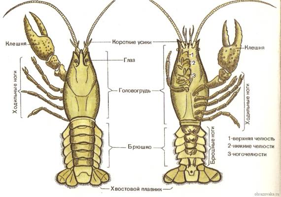 Детально рассмотреть строение ракообразных можно на рисунке ниже.
