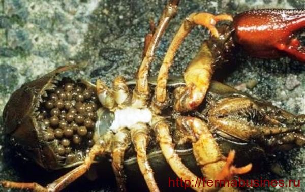 В последний зимний месяц самочка выметывает икру, которая прикреплена к ножкам брюха. В этом месте икра и созревает до начала лета, когда и начинают вылупляться маленькие рачки, которые первые полторы-две недели находятся под брюхом, а потом начинают собственную жизнедеятельность.