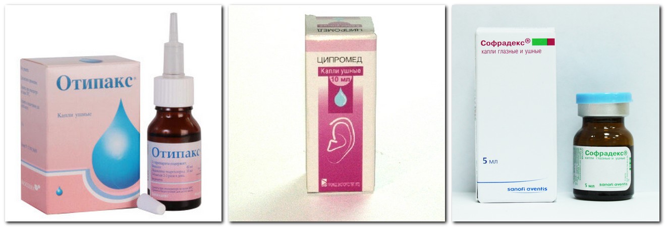 К обезболивающим и антибактериальным лекарственным средствам для уха относят: Софрадекс, Отинум, Альбуцид и др. Для очищения барабанной перепонки от гноя используют такие препараты, как Полимиксин, Риванол, Этоний и др.
