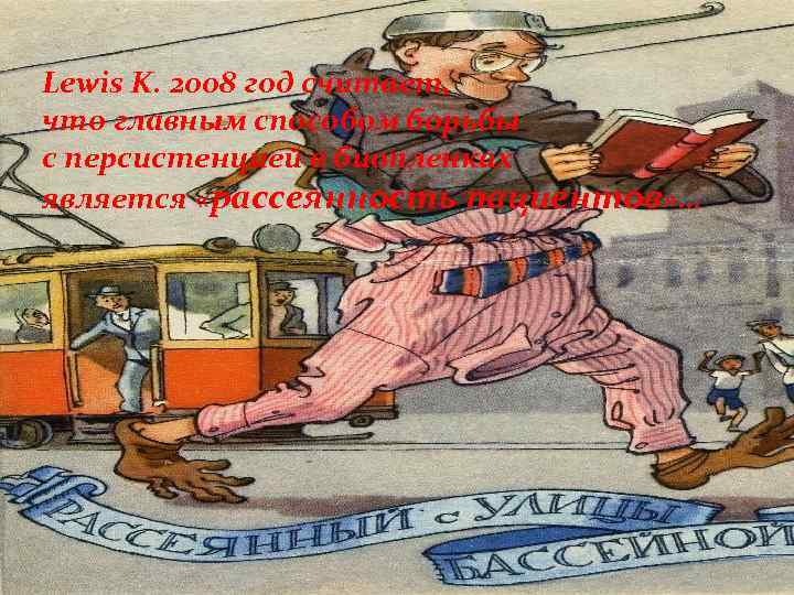 Lewis K. 2008 год считает, что главным способом борьбы с персистенцией в биопленках является «рассеянность пациентов» …
