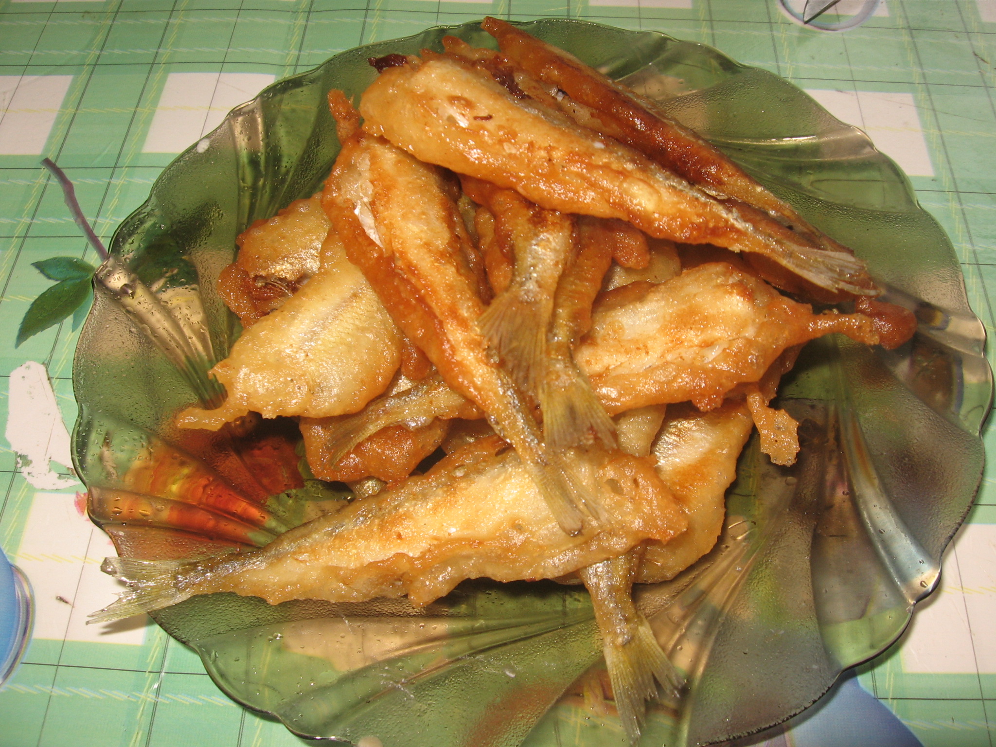 - Перекладываю готовое блюдо на бумажную салфетку. После того, как жир впитается в бумажное полотенце и образуется хрустящая корочка, рыбу перекладываю на блюдо и подаю к столу. Можно подать к рыбе свежие овощи и зелень, в качестве гарнира традиционно идёт картофель и рис.