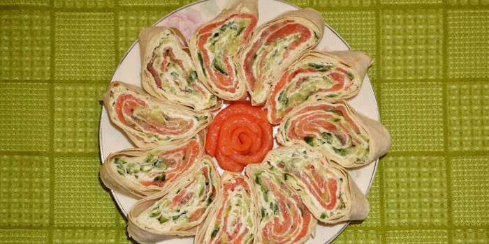 Рецепт рулета из лаваша с красной рыбой