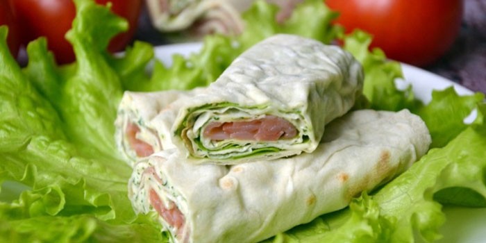 Лаваш с красной рыбой и плавленым сыром