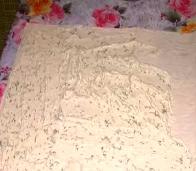 - Сделать рулет. Положить его внутрь второго листа, смазанного маслом и посыпанного специями.