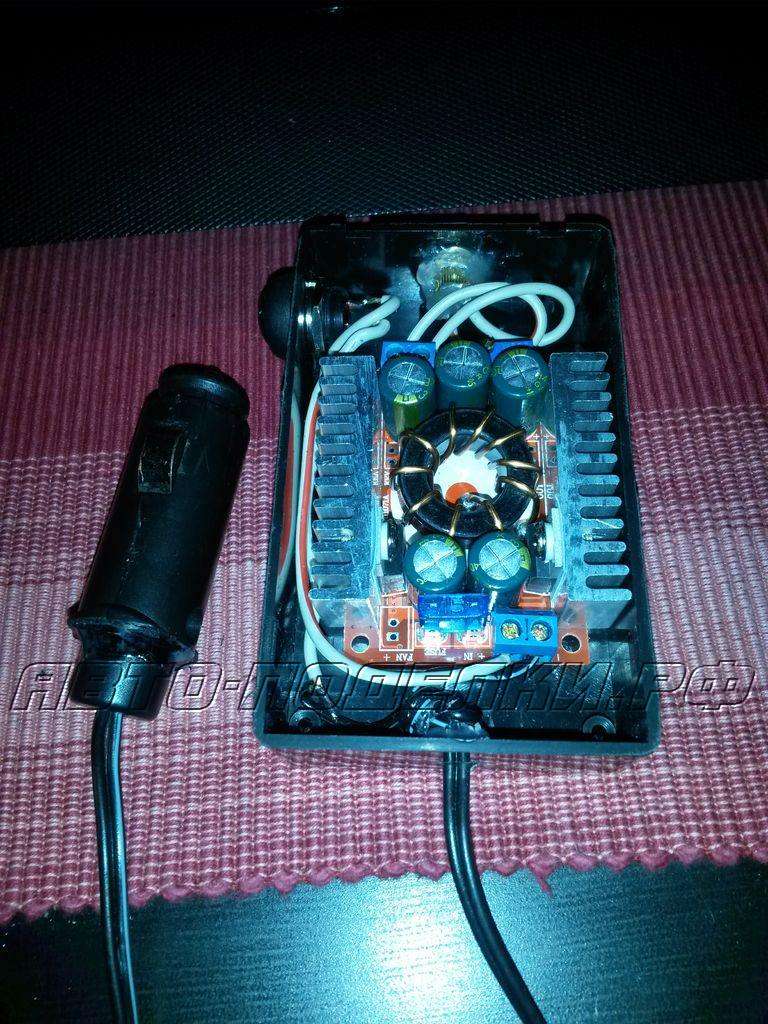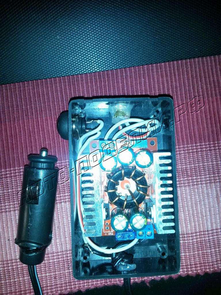 Вы должны сами проверить сколько ампер может выдерживать прикуриватель в вашем автомобиле! Вы собираете и используете это на свой страх и риск. Выходное напряжение понижающего преобразователя я могу настроить от 12В до 1В потенциометром на плате.