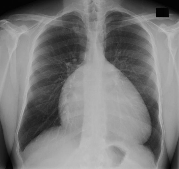 - Рентгенография грудной клетки. Помогает выявить кардиомегалию различной степени , характерную именно для аномалии Эбштейна. которая возникает из-за увеличенного правого предсердия. При этом левая часть сердца остается в норме. На снимке сердце имеет шаровидную форму, легочные поля довольно прозрачны.