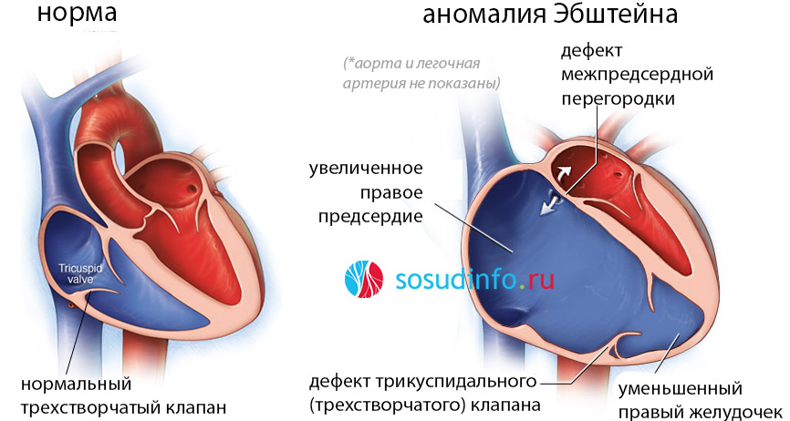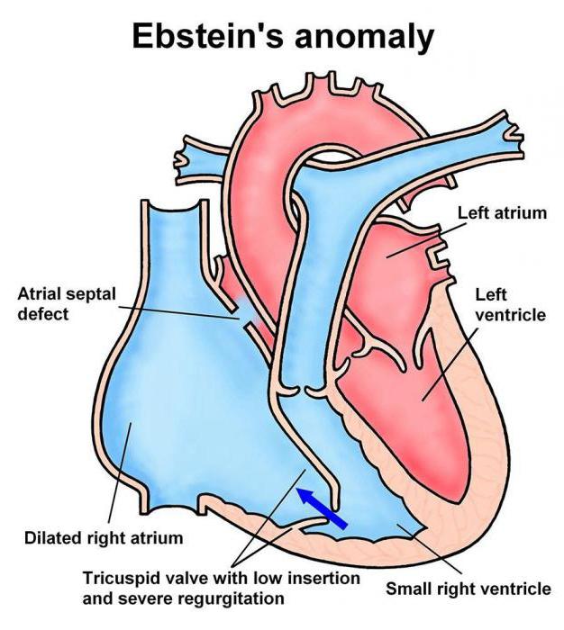 Одним из редко встречающихся пороков сердца является аномалия Эбштейна. Это врожденное заболевание, при котором сердца перемещен в правый желудочек, хотя он должен находиться на границе между желудочком и предсердием. Он расположен значительно ниже по току крови.