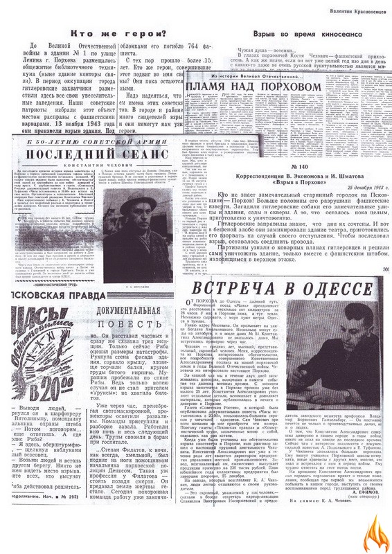 О взрыве немецкого кинотеатра в Порхове, который произошел 13 ноября 1943 года, буквально на следующий день сообщило Совинформбюро. Даже в масштабах страны это было событие: в одно мгновение под развалинами погибло 2 генерала, более 40 высших офицеров вермахта, не говоря уже о низших чинах. Среди жертв оказалось немало сотрудников спецподразделения Абвер-Норд, которое занималось подготовкой и заброской агентов в советский тыл. При взрыве погибли порядка 764 фашистов.