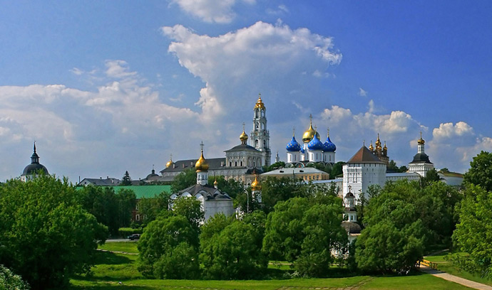 Свято-Троицкая Сергиева Лавра была основана преподобным Сергием Радонежским в 1337-м году. В настоящее время она является крупнейшим православным мужским монастырём в России. Троице-Сергиева Лавра располагается в центре Сергиева Посада – города в Московской области. Обозначение «лавра» указывает на многолюдность, многонаселённость обители. Архитектурный ансамбль монастыря состоит из пятидесяти зданий различного функционального назначения. Есть среди них и православные соборы, и многочисленные колокольни, и царские чертоги. В Троице-Сергиева Лавре нашёл последний приют Борис Годунов и члены его семьи.