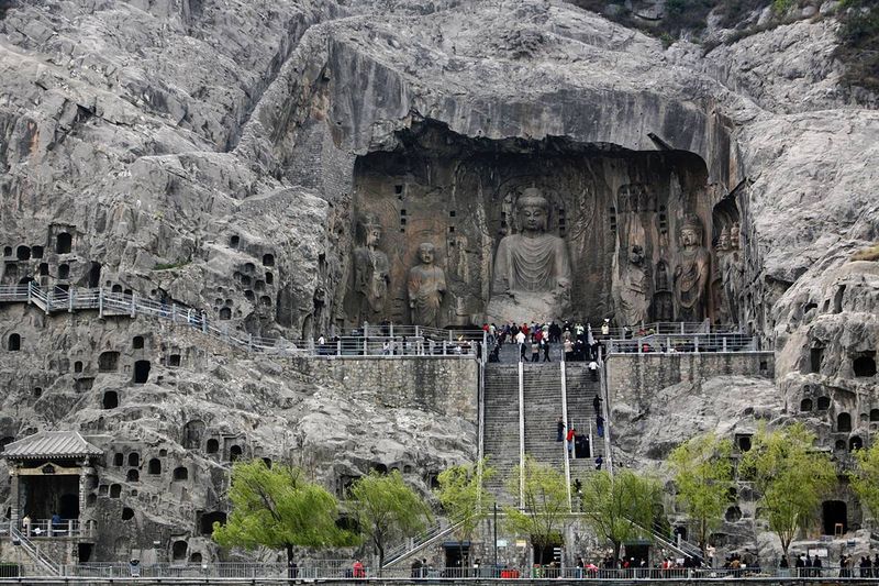 1) Туристы осматривают буддийские скульптуры Гроты Лунмэнь («Драконовы ворота») недалеко от города Лоян в китайской провинции Хэнань. В этом месте расположено более 2 300 пещер; 110 000 буддистских изображений, более 80 дагоб (буддистских мавзолеев), содержащих реликты Будд, а также 2 800 надписей на скалах близ реки Ишуй протяженностью в километр. Впервые буддизм в Китае был представлен именно в этих местах во времена правления Восточной династии Хань. (China Photos/Getty Images)