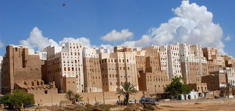 17) Общий вид на город Шибам, расположенный на востоке Йемена в провинции Хадрамаут. Шибам славится своей ни с чем не сравнимой архитектурой, которая включена в программу Всемирного наследия ЮНЕСКО. Все дома тут построены из глиняных кирпичей, примерно 500 домов можно считать многоэтажными, так как они имеют 5-11 этажей. Шибам часто называют «старейшим городом небоскрёбов в мире» или «Пустынным Манхэттаном», это также древнейший пример городского планирования, основанного на принципе вертикального строительства. (Khaled Fazaa/AFP — Getty Images)