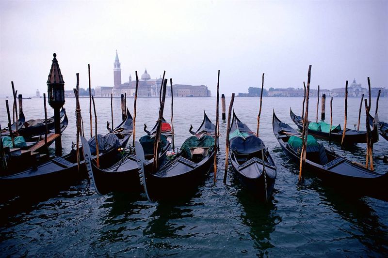 18) Гондолы у берега Большого канала в Венеции. На фоне видна церковь Сан-Джорджо Маджоре. Островная Венеция — морской курорт, центр международного туризма мирового значения, место проведения международных кинофестивалей, художественных и архитектурных выставок. Венеция внесена ЮНЕСКО в программу Всемирного наследия в 1987 году. (AP)