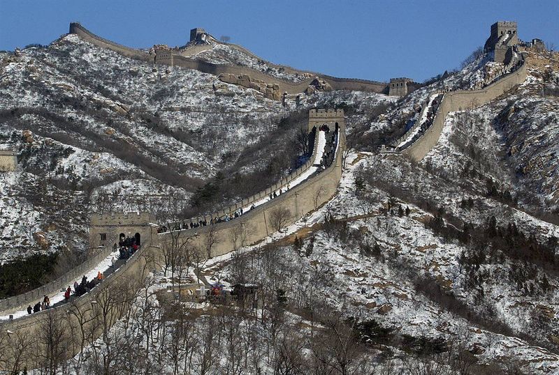 20) Посетители идут вдоль Великой Китайской стены в районе Симатай, к северо-востоку от Пекина. Этот крупнейший памятник архитектуры был построена в качестве одного из четырех главных стратегических опорных пунктов с целью обороны от вторжения племен с севера. Великая стена протяженностью 8851,8 км является одним из крупнейших когда-либо завершенных строительных проектов. Она была включена в Список всемирного наследия в 1987 году. (Frederic J. Brown/AFP — Getty Images)