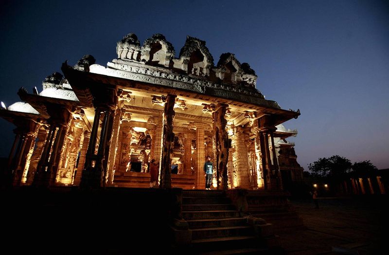 21) Храм в Хампи, вблизи южно-индийского города Хоспет, к северу от Бангалора. Хампи расположен посреди руин Виджаянагара — бывшей столицы Виджаянагарской империи. Хампи и ее памятники были включены в Список объектов Всемирного наследия ЮНЕСКО в 1986 году. (Dibyangshu Sarkar/AFP — Getty Images)