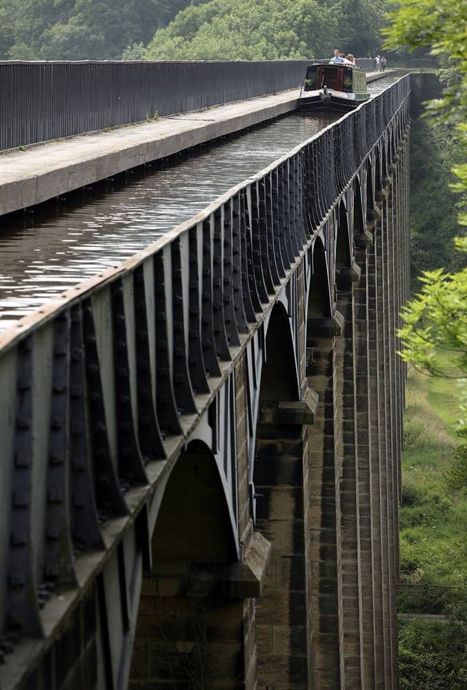 27) Расположенный в северо-восточной части Уэльса, 18-километровый акведук Понткисиллте – подвиг гражданского строительства времен промышленной революции, строительство которого было завершено в первые годы 19-го века. Спустя более чем 200 лет после своего открытия всё ещё используется и является одним из наиболее загруженных участков канальной сети Великобритании, пропуская около 15 000 лодок в год. В 2009 году акведук Понткисилте был занесён в список Всемирного наследия ЮНЕСКО как «веха в истории гражданской инженерии эпохи промышленной революции». Этот акведук – один из необычных памятников сантехникам и водопроводу (Christopher Furlong/Getty Images)