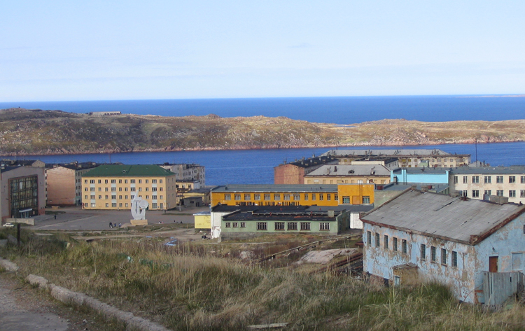 Мурманская область. Располагается на побережье, вблизи островов Йоканьг (Баренцево море). Что самое интересное – это, практически город – призрак. Заселено только примерно 20% людьми. Автомобильных путей в город нет. Железнодорожных веток – тоже. Можно добраться только по воде или по воздуху. Раньше, как говорят те, кто там ещё остался, летал самолёт, а сейчас – только вертолёты и то, изредка. Если на него посмотреть издалека, то город вполне немаленький, но если узнать его население, то поверить будет трудно. Всего в этом умирающем городе живёт 2065 горожан.