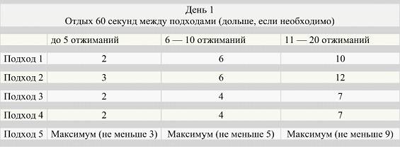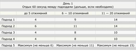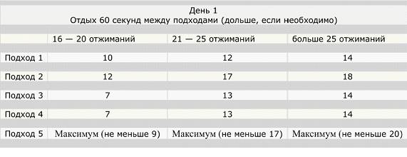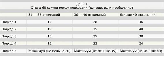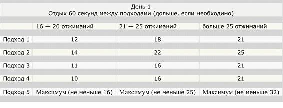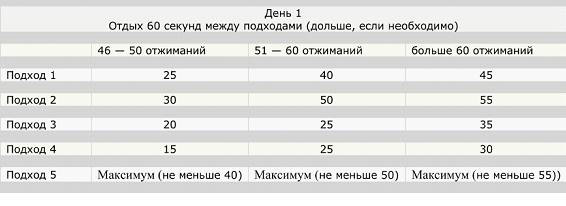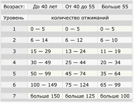 Кстати, нельзя не сказать о таблице отжиманий от пола. Выглядит она следующим образом: