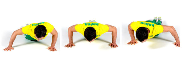 Изначально, упражнения выполняются с упором на колени. Это самый начальный и лёгкий уровень, грудные мышцы и другие мышечные группы не загружены полностью. После полного освоения данной техники уже можно переходить к классической технике.